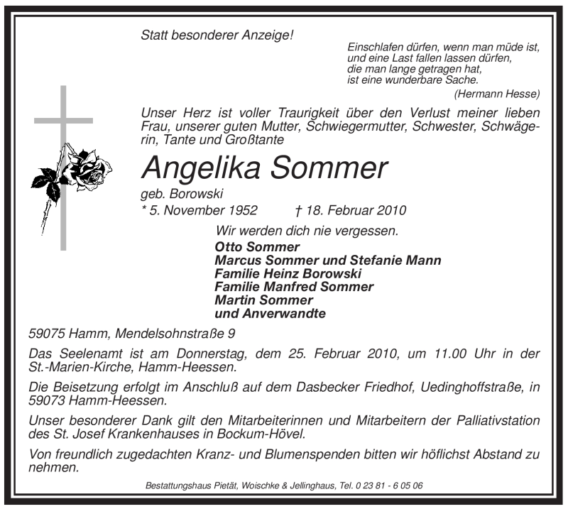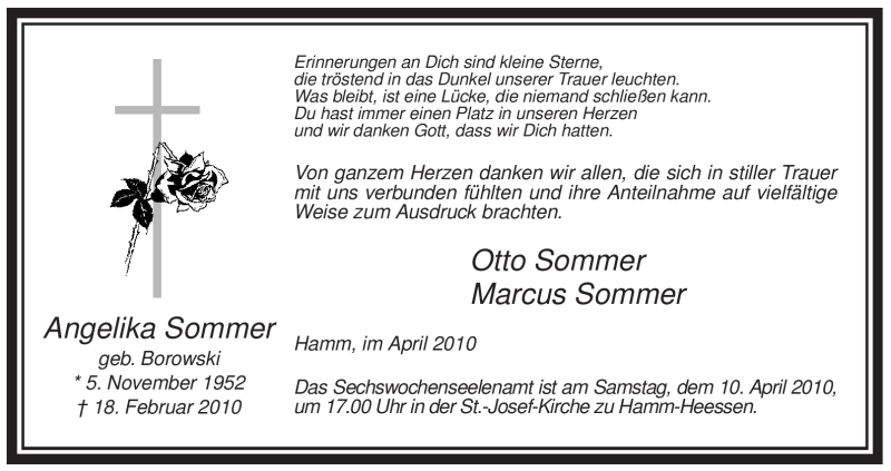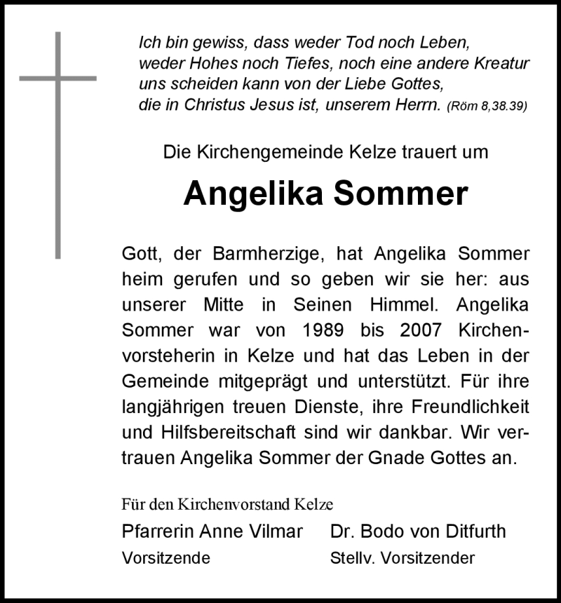 Hier finden Sie alle Traueranzeigen aus der Zeitung, die bisher für Angelika Sommer erschienen sind. Weitere Traueranzeigen, die in der Zeitung erscheinen, werden hier ebenfalls aufgelistet