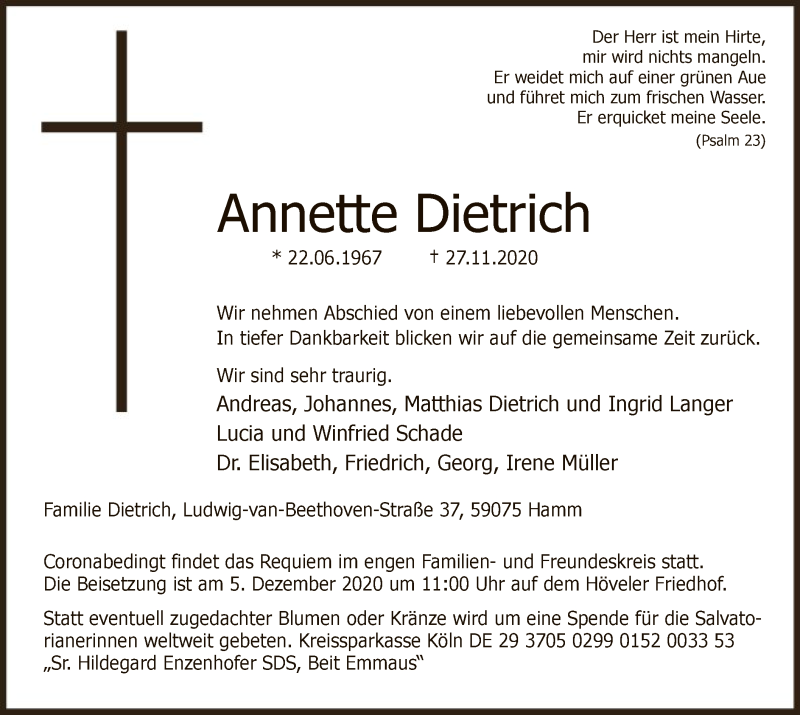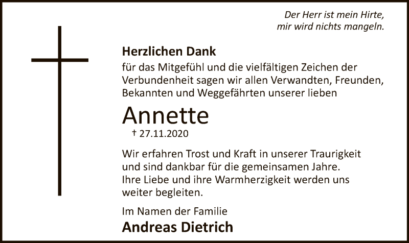 Hier finden Sie alle Traueranzeigen aus der Zeitung, die bisher für Annette Dietrich erschienen sind. Weitere Traueranzeigen, die in der Zeitung erscheinen, werden hier ebenfalls aufgelistet