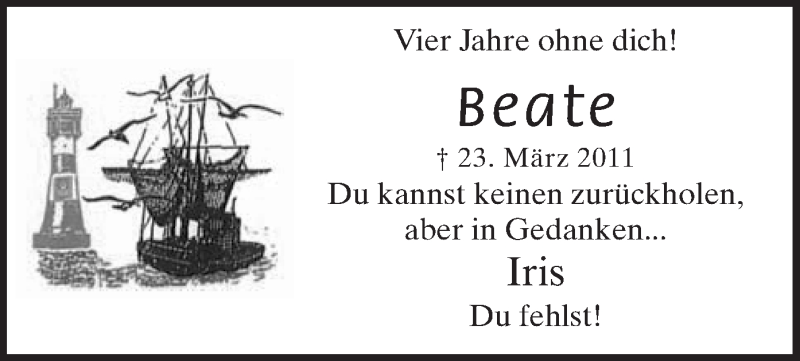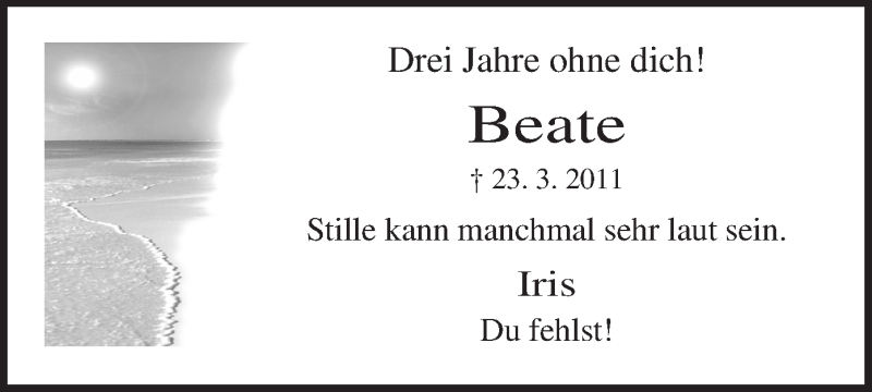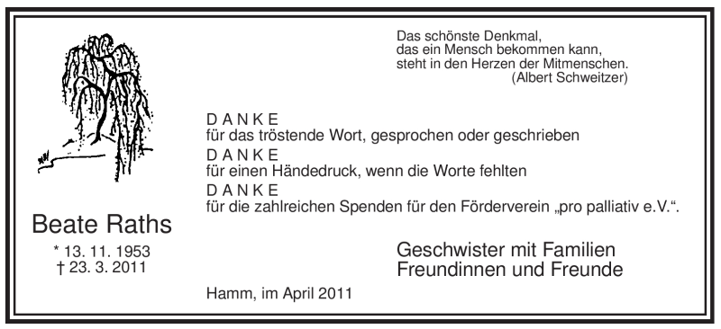 Hier finden Sie alle Traueranzeigen aus der Zeitung, die bisher für Beate Raths erschienen sind. Weitere Traueranzeigen, die in der Zeitung erscheinen, werden hier ebenfalls aufgelistet