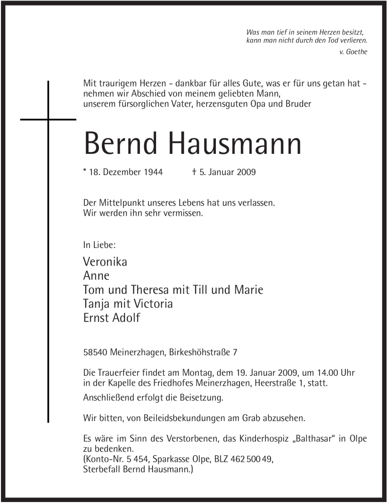 Hier finden Sie alle Traueranzeigen aus der Zeitung, die bisher für Bernd Hausmann erschienen sind. Weitere Traueranzeigen, die in der Zeitung erscheinen, werden hier ebenfalls aufgelistet