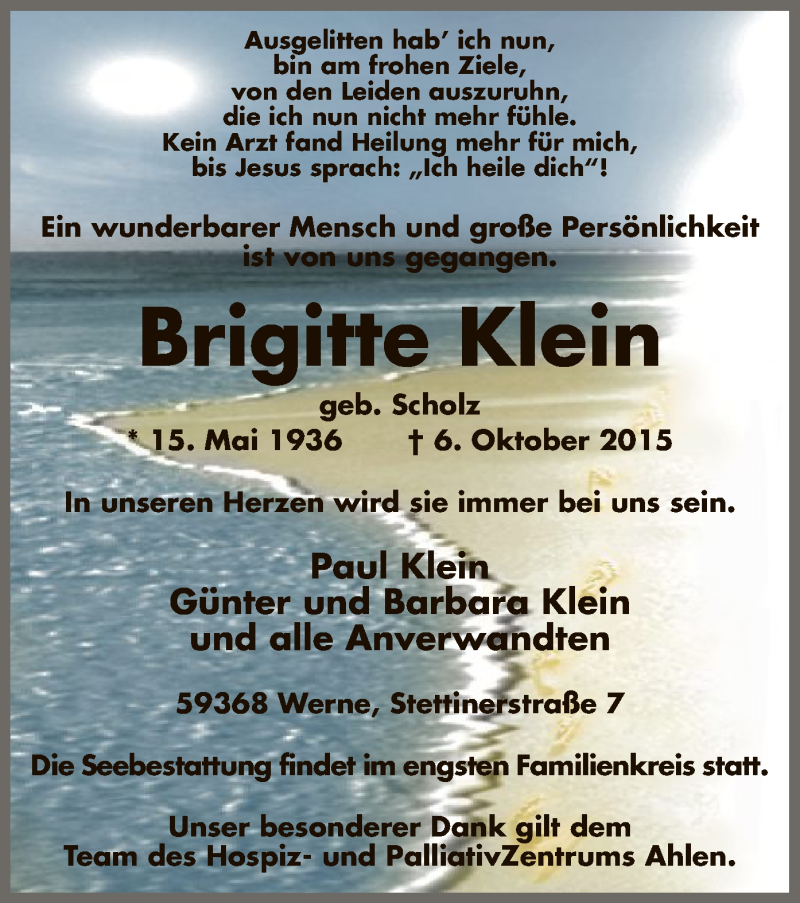Hier finden Sie alle Traueranzeigen aus der Zeitung, die bisher für Brigitte Klein erschienen sind. Weitere Traueranzeigen, die in der Zeitung erscheinen, werden hier ebenfalls aufgelistet
