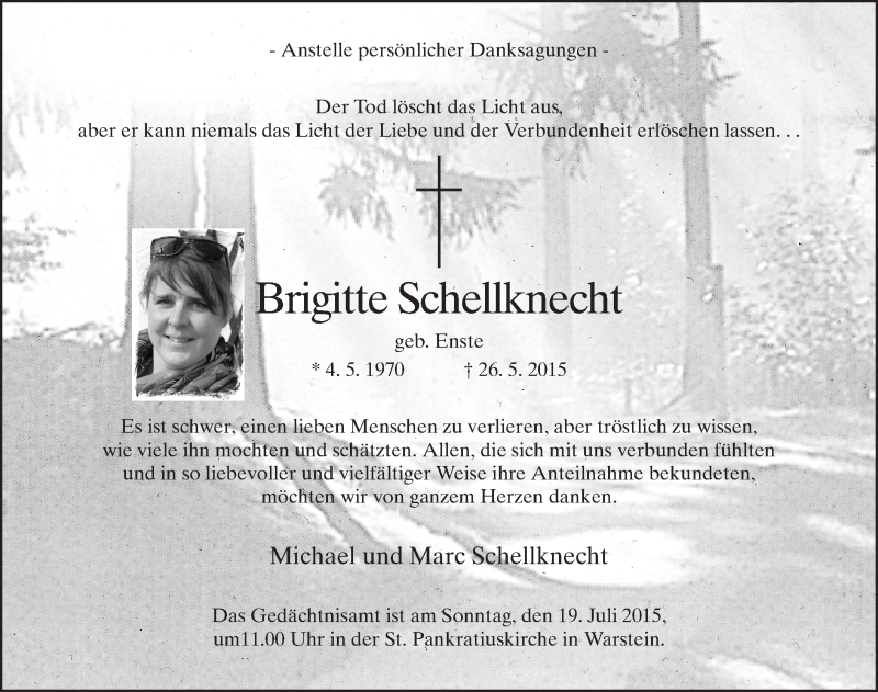 Hier finden Sie alle Traueranzeigen aus der Zeitung, die bisher für Brigitte Schellknecht erschienen sind. Weitere Traueranzeigen, die in der Zeitung erscheinen, werden hier ebenfalls aufgelistet