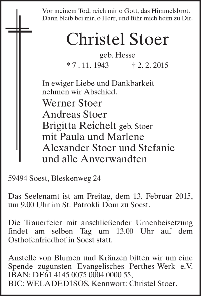 Hier finden Sie alle Traueranzeigen aus der Zeitung, die bisher für Christel Stoer erschienen sind. Weitere Traueranzeigen, die in der Zeitung erscheinen, werden hier ebenfalls aufgelistet