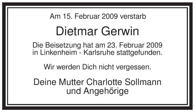 Hier finden Sie alle Traueranzeigen aus der Zeitung, die bisher für Dietmar Sollmann erschienen sind. Weitere Traueranzeigen, die in der Zeitung erscheinen, werden hier ebenfalls aufgelistet