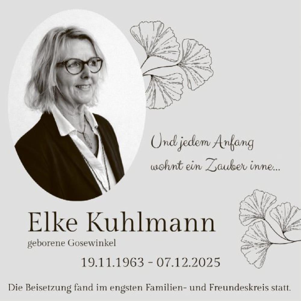 Hier finden Sie alle Traueranzeigen aus der Zeitung, die bisher für Elke Kuhlmann erschienen sind. Weitere Traueranzeigen, die in der Zeitung erscheinen, werden hier ebenfalls aufgelistet