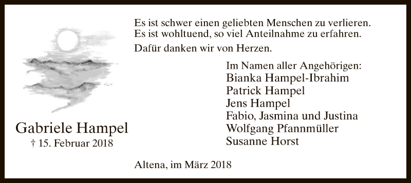 Hier finden Sie alle Traueranzeigen aus der Zeitung, die bisher für Gabriele Hampel erschienen sind. Weitere Traueranzeigen, die in der Zeitung erscheinen, werden hier ebenfalls aufgelistet