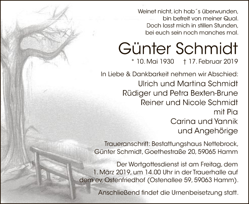 Hier finden Sie alle Traueranzeigen aus der Zeitung, die bisher für Günter Schmidt erschienen sind. Weitere Traueranzeigen, die in der Zeitung erscheinen, werden hier ebenfalls aufgelistet
