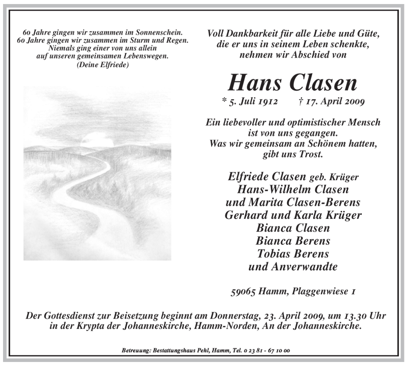 Hier finden Sie alle Traueranzeigen aus der Zeitung, die bisher für Hans Clasen erschienen sind. Weitere Traueranzeigen, die in der Zeitung erscheinen, werden hier ebenfalls aufgelistet