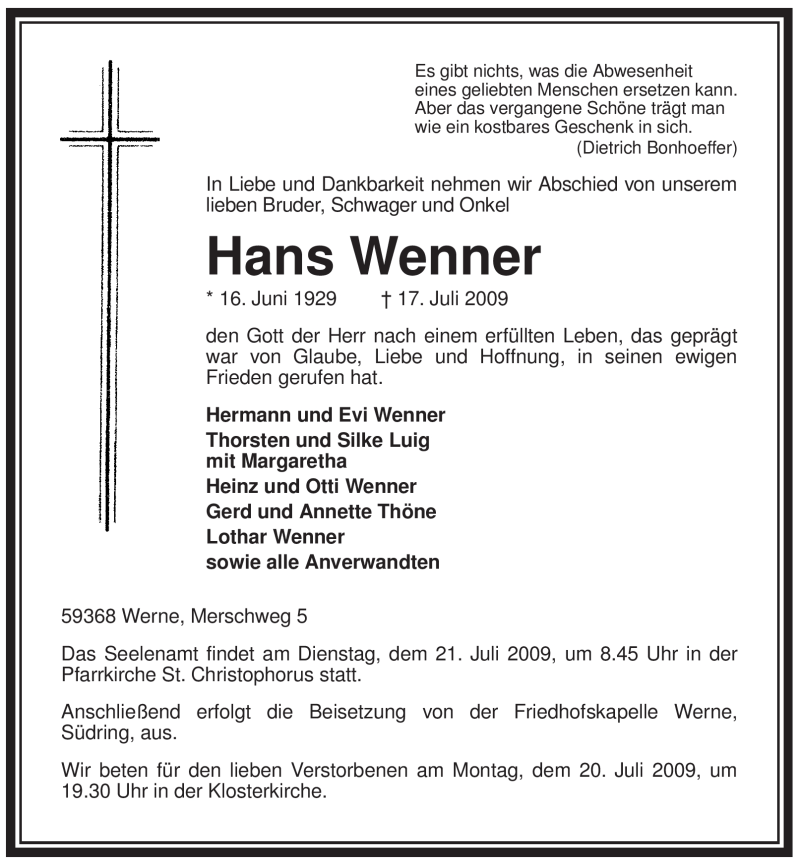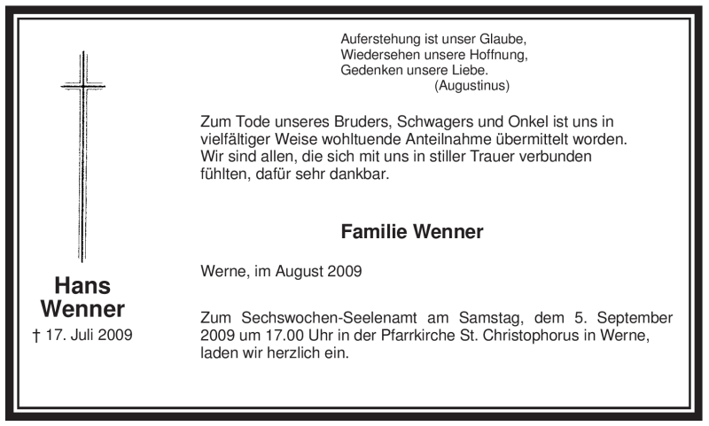 Hier finden Sie alle Traueranzeigen aus der Zeitung, die bisher für Hans Wenner erschienen sind. Weitere Traueranzeigen, die in der Zeitung erscheinen, werden hier ebenfalls aufgelistet