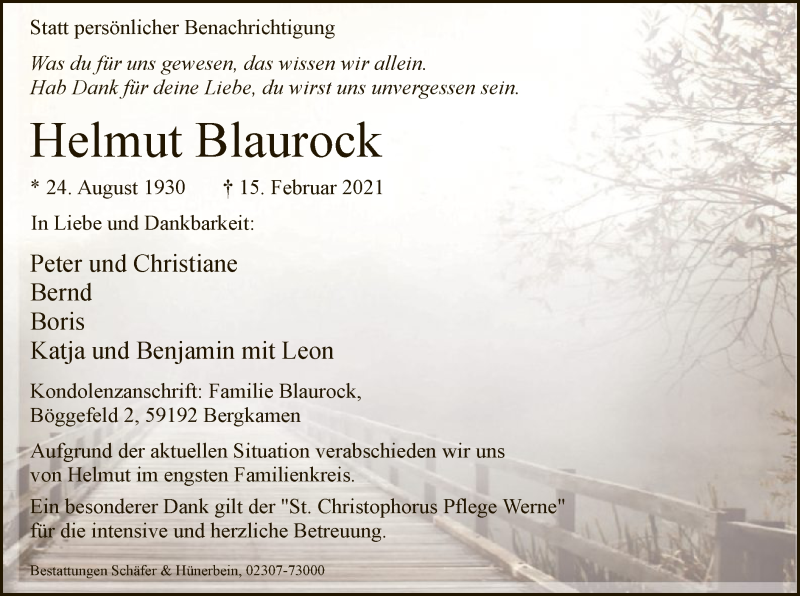 Hier finden Sie alle Traueranzeigen aus der Zeitung, die bisher für Helmut Blaurock erschienen sind. Weitere Traueranzeigen, die in der Zeitung erscheinen, werden hier ebenfalls aufgelistet