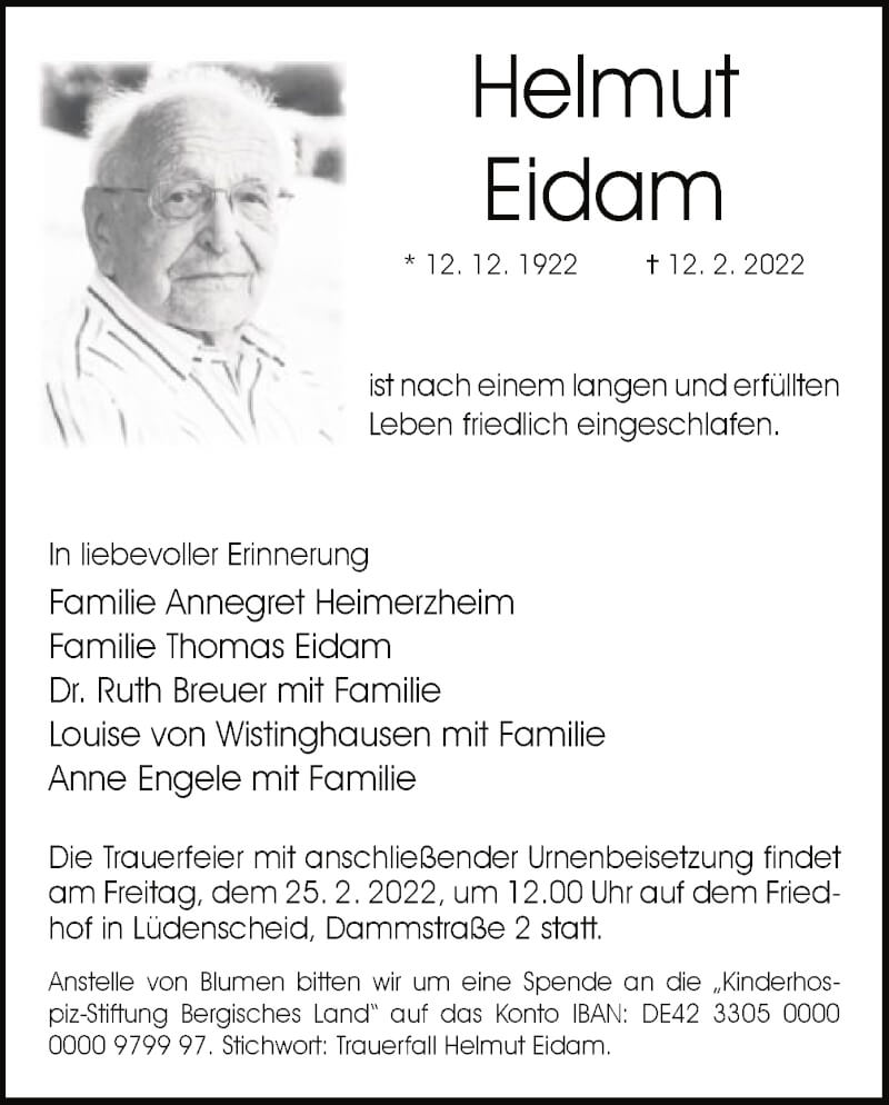 Hier finden Sie alle Traueranzeigen aus der Zeitung, die bisher für Helmut Eidam erschienen sind. Weitere Traueranzeigen, die in der Zeitung erscheinen, werden hier ebenfalls aufgelistet
