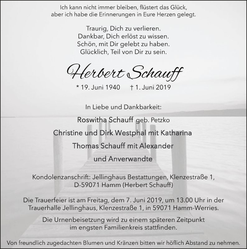 Hier finden Sie alle Traueranzeigen aus der Zeitung, die bisher für Herbert Schauff erschienen sind. Weitere Traueranzeigen, die in der Zeitung erscheinen, werden hier ebenfalls aufgelistet