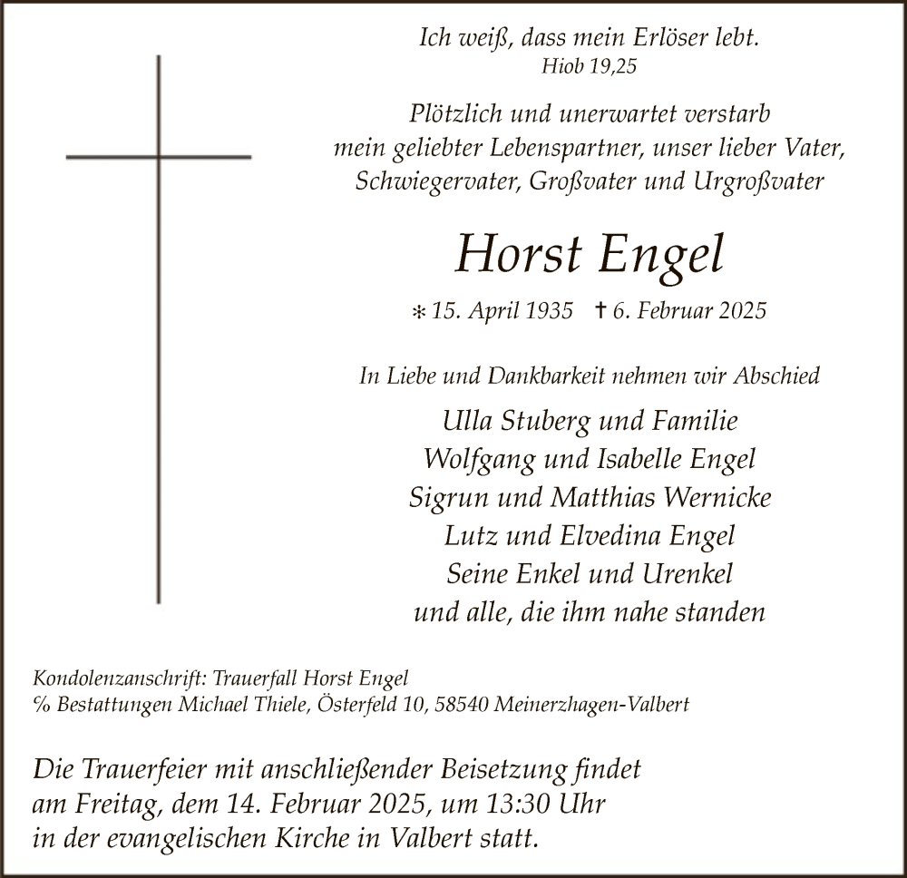 Hier finden Sie alle Traueranzeigen aus der Zeitung, die bisher für Horst Engel erschienen sind. Weitere Traueranzeigen, die in der Zeitung erscheinen, werden hier ebenfalls aufgelistet