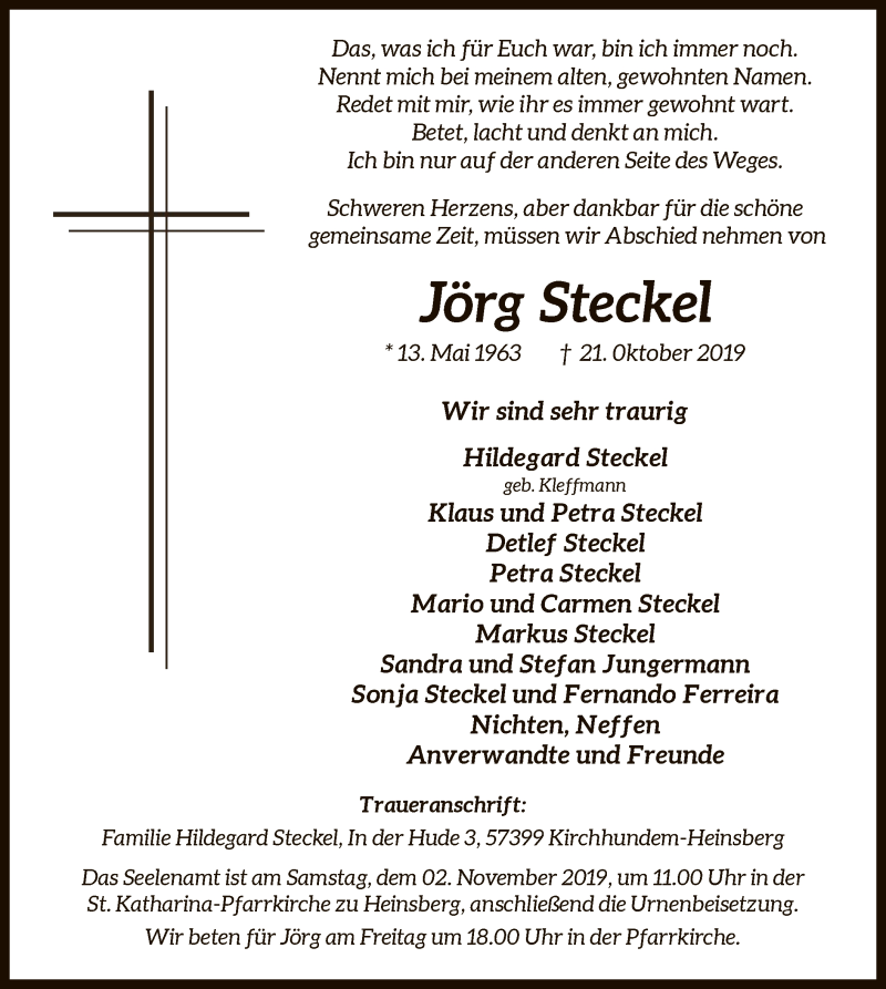 Hier finden Sie alle Traueranzeigen aus der Zeitung, die bisher für Jörg Steckel erschienen sind. Weitere Traueranzeigen, die in der Zeitung erscheinen, werden hier ebenfalls aufgelistet