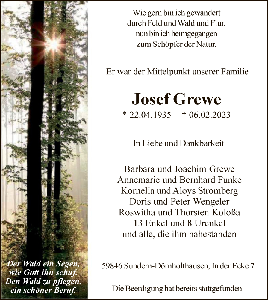 Hier finden Sie alle Traueranzeigen aus der Zeitung, die bisher für Josef Grewe erschienen sind. Weitere Traueranzeigen, die in der Zeitung erscheinen, werden hier ebenfalls aufgelistet