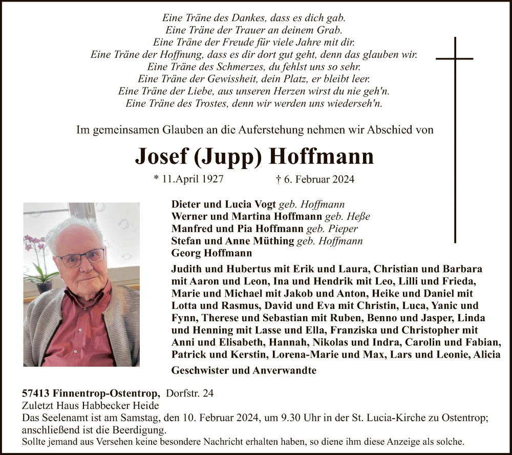 Hier finden Sie alle Traueranzeigen aus der Zeitung, die bisher für Josef Hoffmann erschienen sind. Weitere Traueranzeigen, die in der Zeitung erscheinen, werden hier ebenfalls aufgelistet