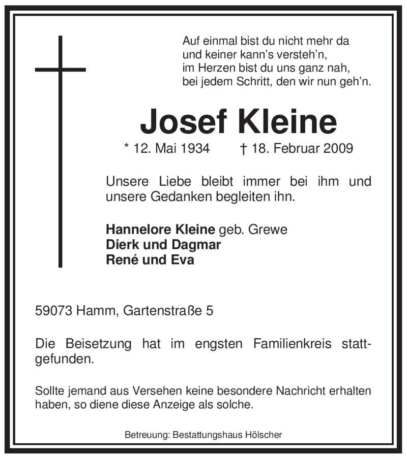 Hier finden Sie alle Traueranzeigen aus der Zeitung, die bisher für Josef Kleine erschienen sind. Weitere Traueranzeigen, die in der Zeitung erscheinen, werden hier ebenfalls aufgelistet