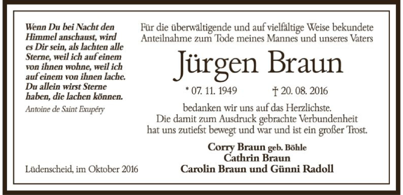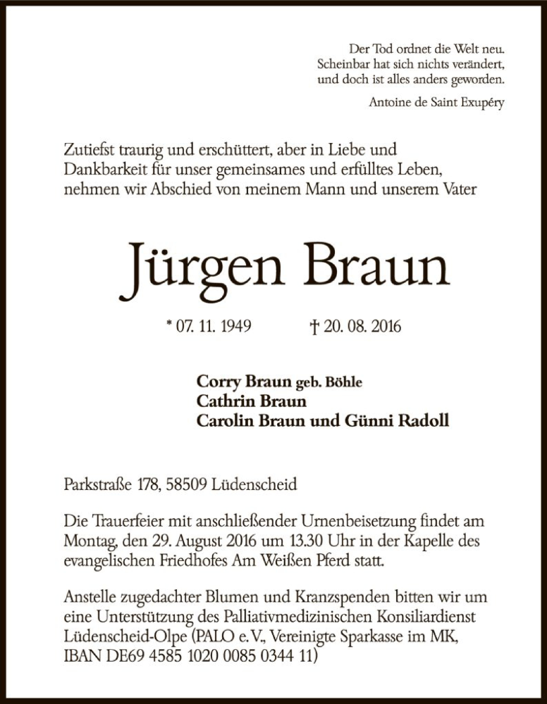 Hier finden Sie alle Traueranzeigen aus der Zeitung, die bisher für Jürgen Braun erschienen sind. Weitere Traueranzeigen, die in der Zeitung erscheinen, werden hier ebenfalls aufgelistet