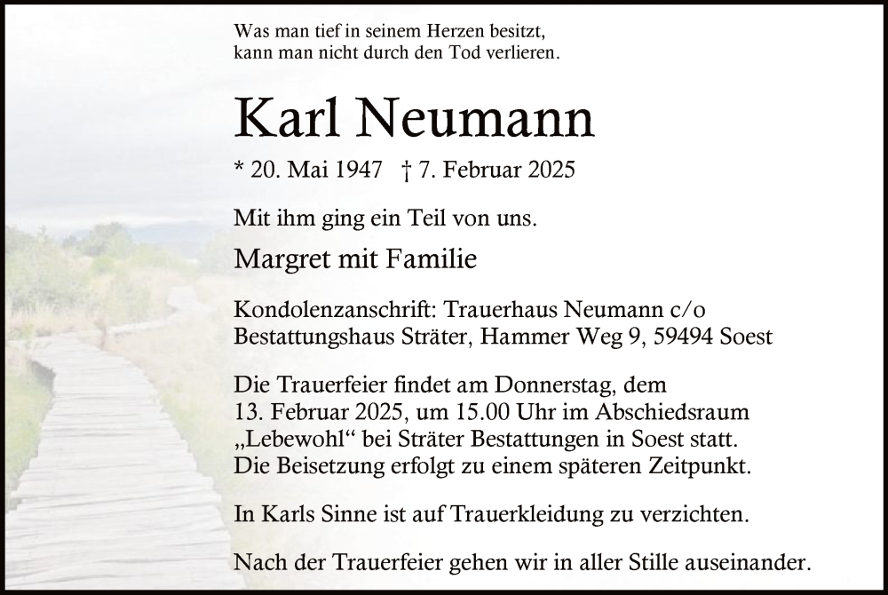 Hier finden Sie alle Traueranzeigen aus der Zeitung, die bisher für Karl Neumann erschienen sind. Weitere Traueranzeigen, die in der Zeitung erscheinen, werden hier ebenfalls aufgelistet