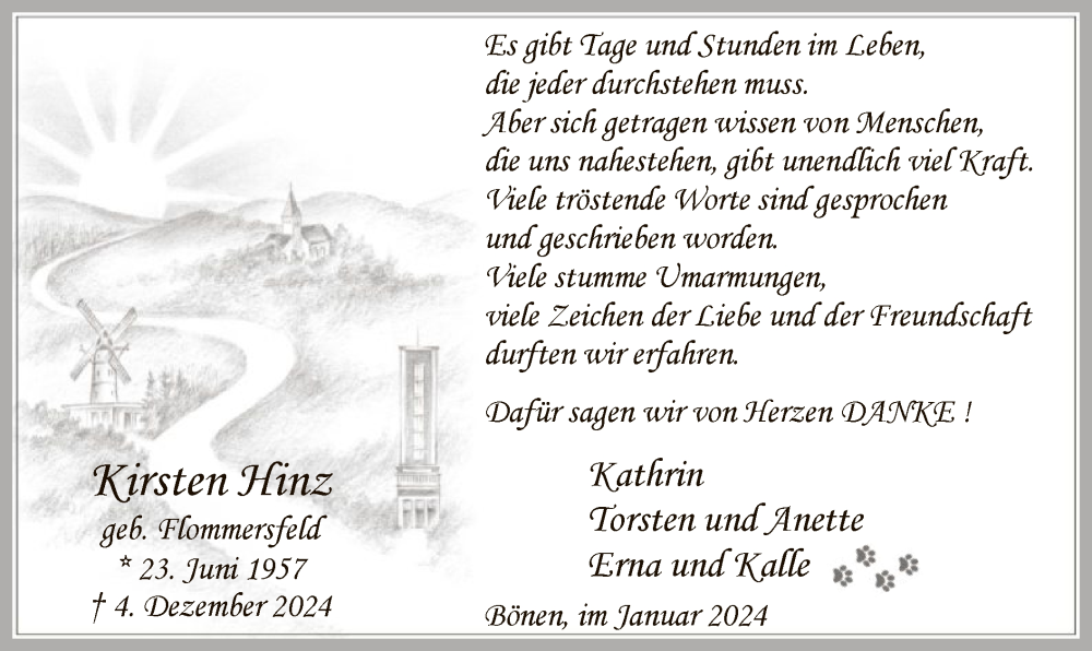 Hier finden Sie alle Traueranzeigen aus der Zeitung, die bisher für Kirsten Hinz erschienen sind. Weitere Traueranzeigen, die in der Zeitung erscheinen, werden hier ebenfalls aufgelistet