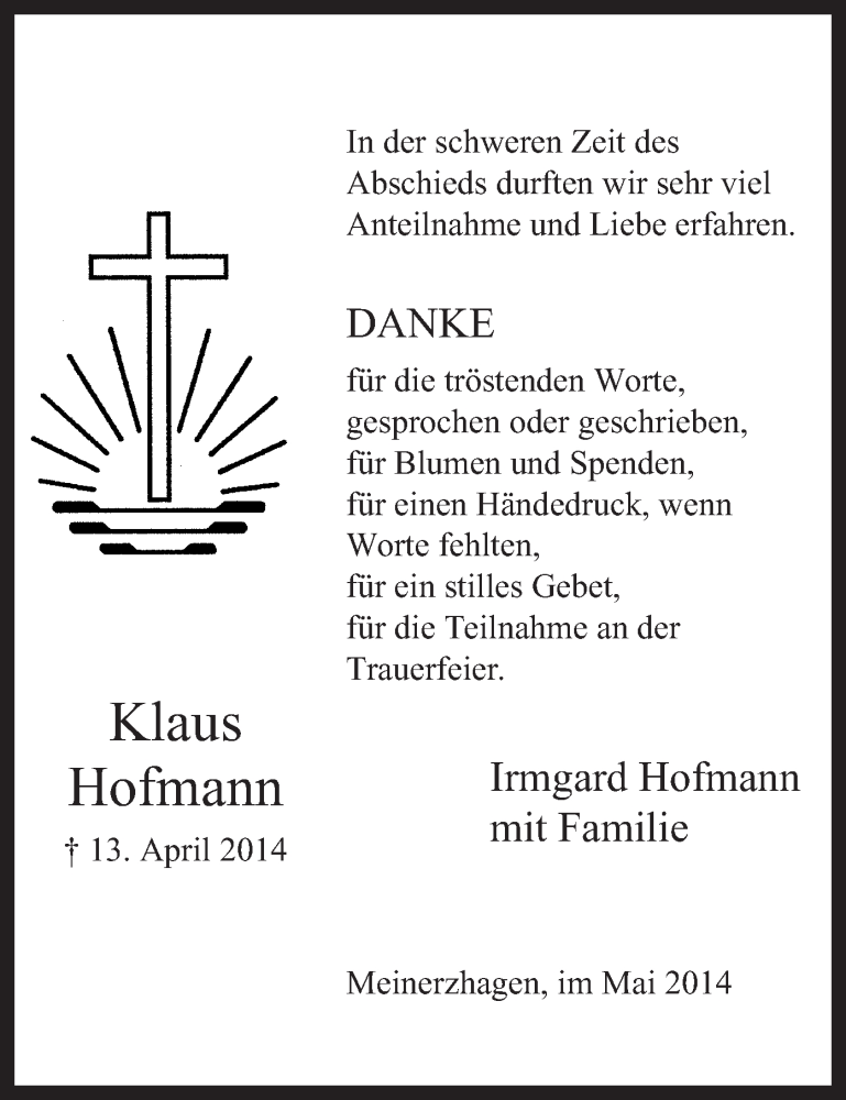 Hier finden Sie alle Traueranzeigen aus der Zeitung, die bisher für Klaus Hofmann erschienen sind. Weitere Traueranzeigen, die in der Zeitung erscheinen, werden hier ebenfalls aufgelistet