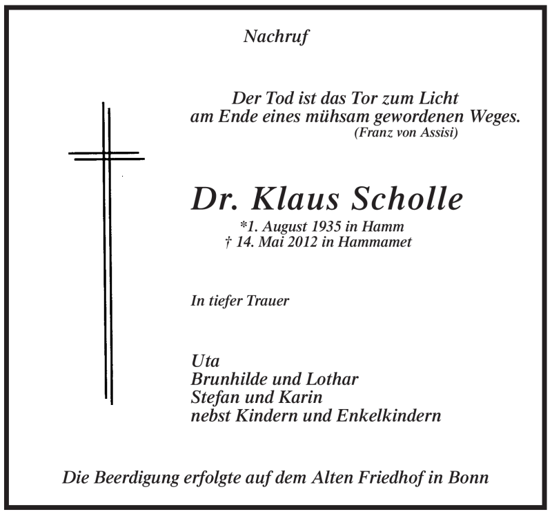 Hier finden Sie alle Traueranzeigen aus der Zeitung, die bisher für Klaus Scholle erschienen sind. Weitere Traueranzeigen, die in der Zeitung erscheinen, werden hier ebenfalls aufgelistet