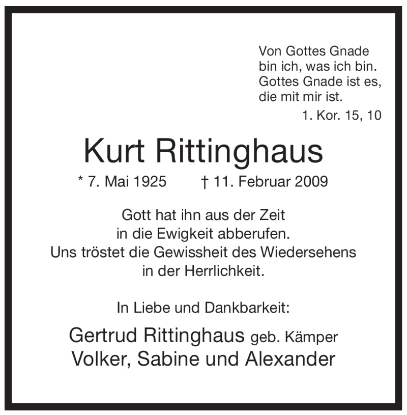 Hier finden Sie alle Traueranzeigen aus der Zeitung, die bisher für Kurt Rittinghaus erschienen sind. Weitere Traueranzeigen, die in der Zeitung erscheinen, werden hier ebenfalls aufgelistet