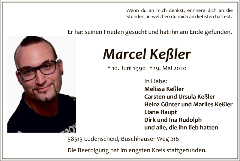 Hier finden Sie alle Traueranzeigen aus der Zeitung, die bisher für Marcel Keßler erschienen sind. Weitere Traueranzeigen, die in der Zeitung erscheinen, werden hier ebenfalls aufgelistet