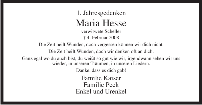 Hier finden Sie alle Traueranzeigen aus der Zeitung, die bisher für Maria Hesse erschienen sind. Weitere Traueranzeigen, die in der Zeitung erscheinen, werden hier ebenfalls aufgelistet