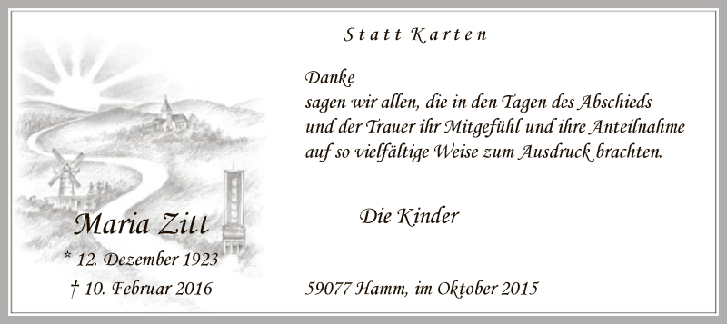 Hier finden Sie alle Traueranzeigen aus der Zeitung, die bisher für Maria Zitt erschienen sind. Weitere Traueranzeigen, die in der Zeitung erscheinen, werden hier ebenfalls aufgelistet