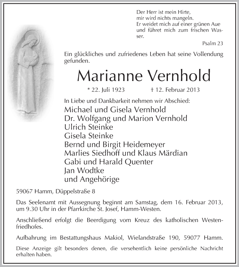 Hier finden Sie alle Traueranzeigen aus der Zeitung, die bisher für Marianne Vernhold erschienen sind. Weitere Traueranzeigen, die in der Zeitung erscheinen, werden hier ebenfalls aufgelistet
