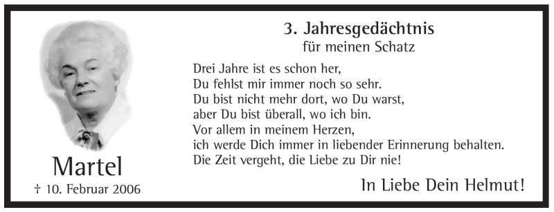 Hier finden Sie alle Traueranzeigen aus der Zeitung, die bisher für Martel Unbekannt erschienen sind. Weitere Traueranzeigen, die in der Zeitung erscheinen, werden hier ebenfalls aufgelistet