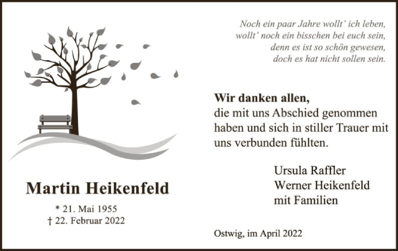 Hier finden Sie alle Traueranzeigen aus der Zeitung, die bisher für Martin Heikenfeld erschienen sind. Weitere Traueranzeigen, die in der Zeitung erscheinen, werden hier ebenfalls aufgelistet