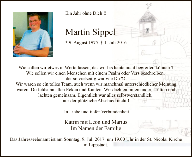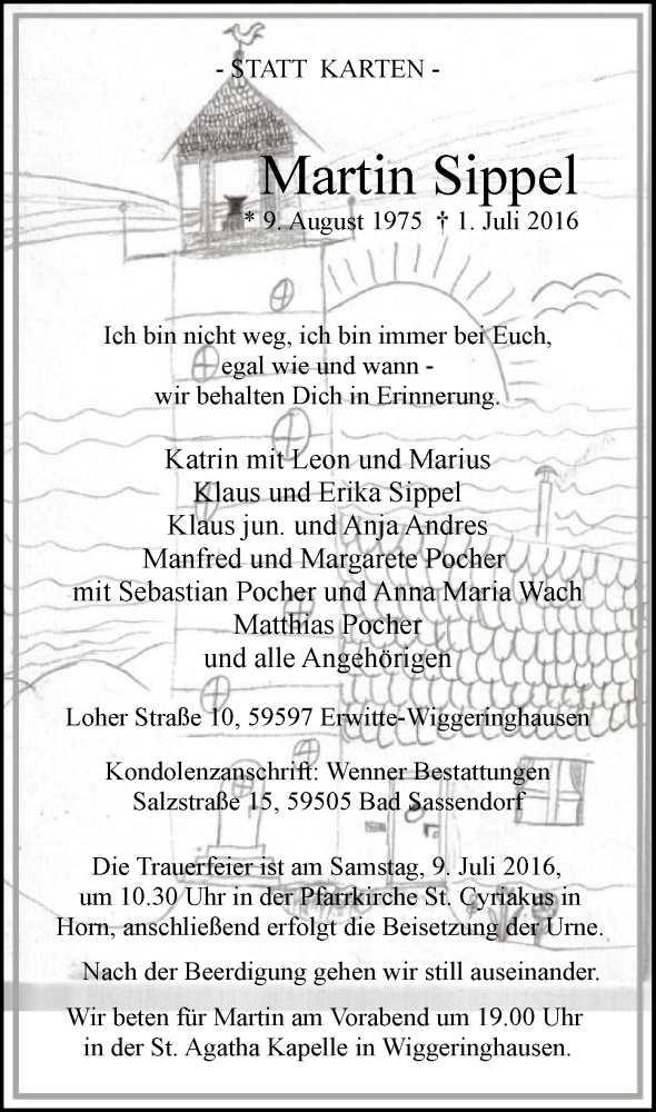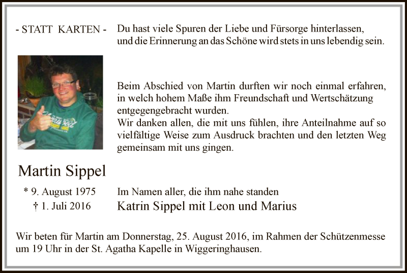 Hier finden Sie alle Traueranzeigen aus der Zeitung, die bisher für Martin Sippel erschienen sind. Weitere Traueranzeigen, die in der Zeitung erscheinen, werden hier ebenfalls aufgelistet