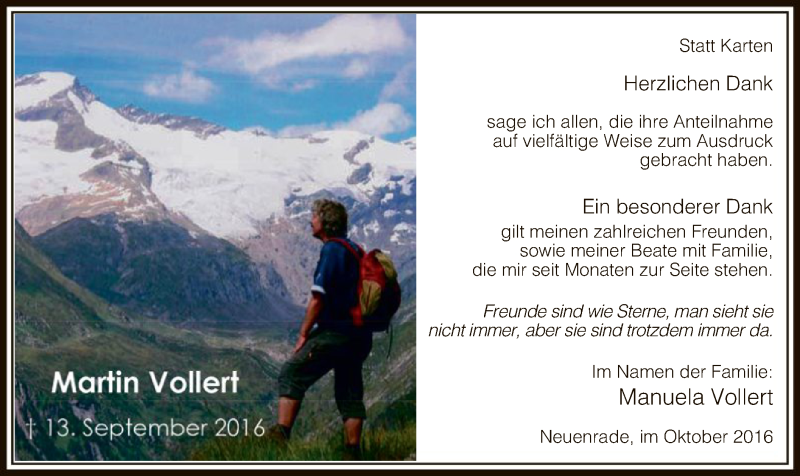 Hier finden Sie alle Traueranzeigen aus der Zeitung, die bisher für Martin Vollert erschienen sind. Weitere Traueranzeigen, die in der Zeitung erscheinen, werden hier ebenfalls aufgelistet
