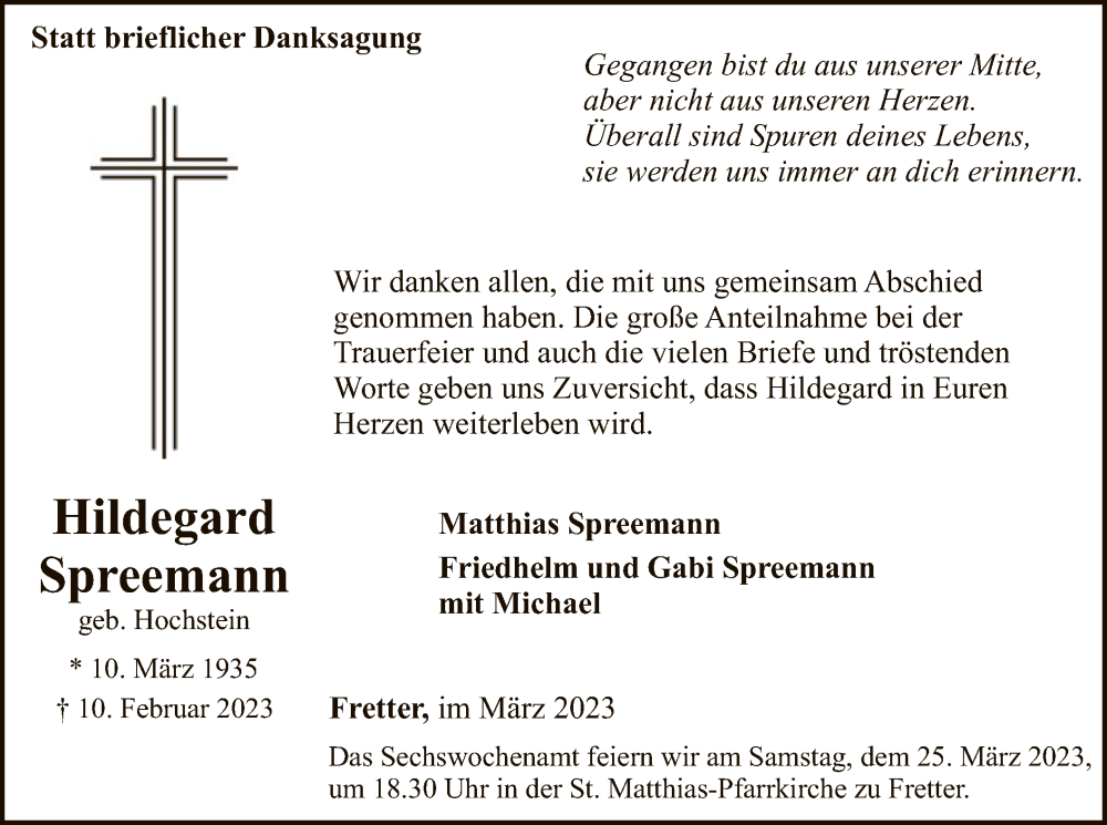 Hier finden Sie alle Traueranzeigen aus der Zeitung, die bisher für Matthias Spreemann erschienen sind. Weitere Traueranzeigen, die in der Zeitung erscheinen, werden hier ebenfalls aufgelistet