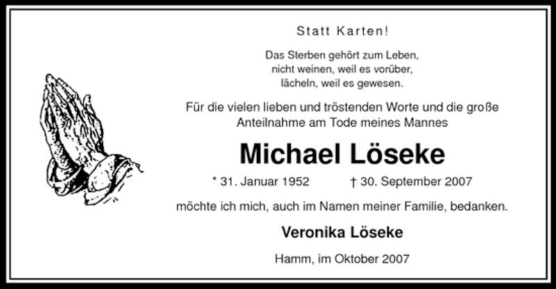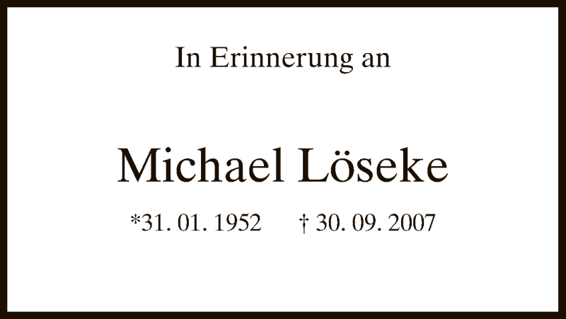Hier finden Sie alle Traueranzeigen aus der Zeitung, die bisher für Michael Löseke erschienen sind. Weitere Traueranzeigen, die in der Zeitung erscheinen, werden hier ebenfalls aufgelistet