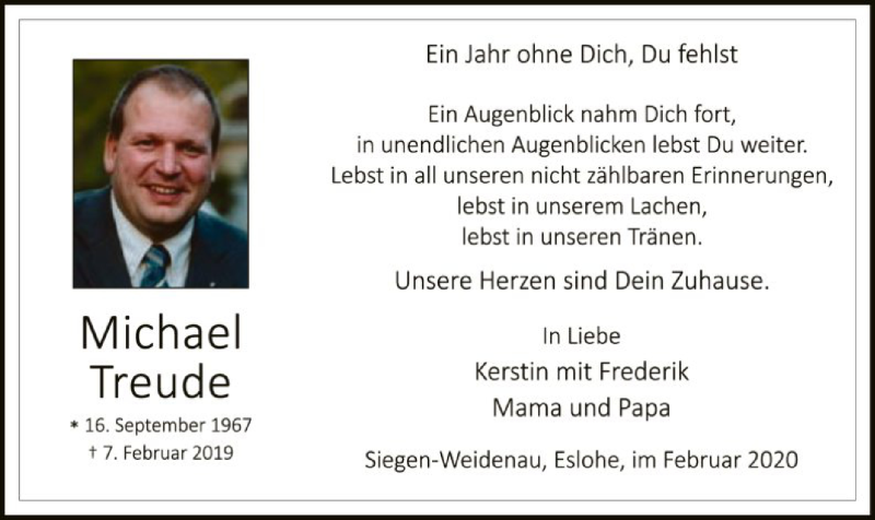 Hier finden Sie alle Traueranzeigen aus der Zeitung, die bisher für Michael Treude erschienen sind. Weitere Traueranzeigen, die in der Zeitung erscheinen, werden hier ebenfalls aufgelistet