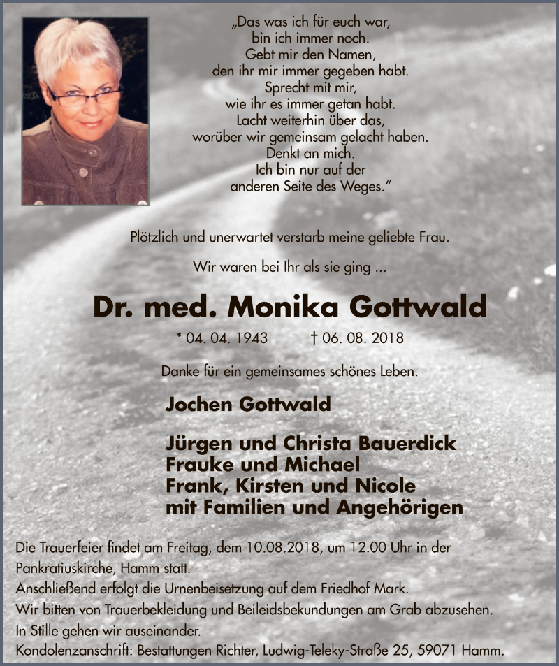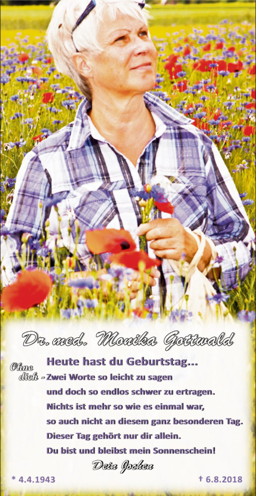Hier finden Sie alle Traueranzeigen aus der Zeitung, die bisher für Monika Gottwald erschienen sind. Weitere Traueranzeigen, die in der Zeitung erscheinen, werden hier ebenfalls aufgelistet