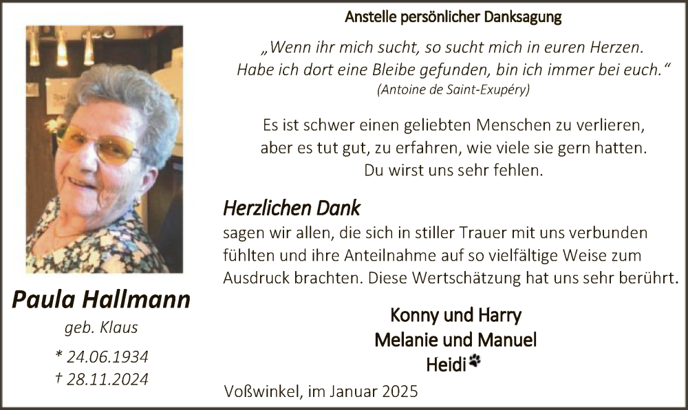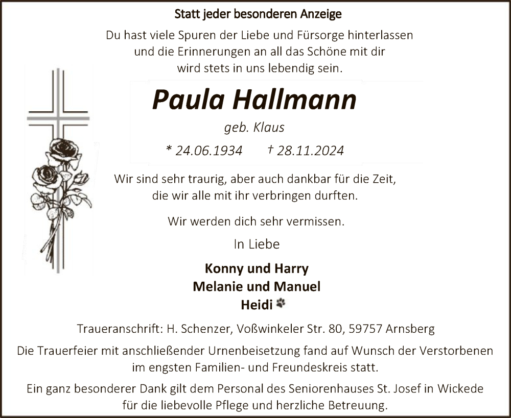 Hier finden Sie alle Traueranzeigen aus der Zeitung, die bisher für Paula Hallmann erschienen sind. Weitere Traueranzeigen, die in der Zeitung erscheinen, werden hier ebenfalls aufgelistet