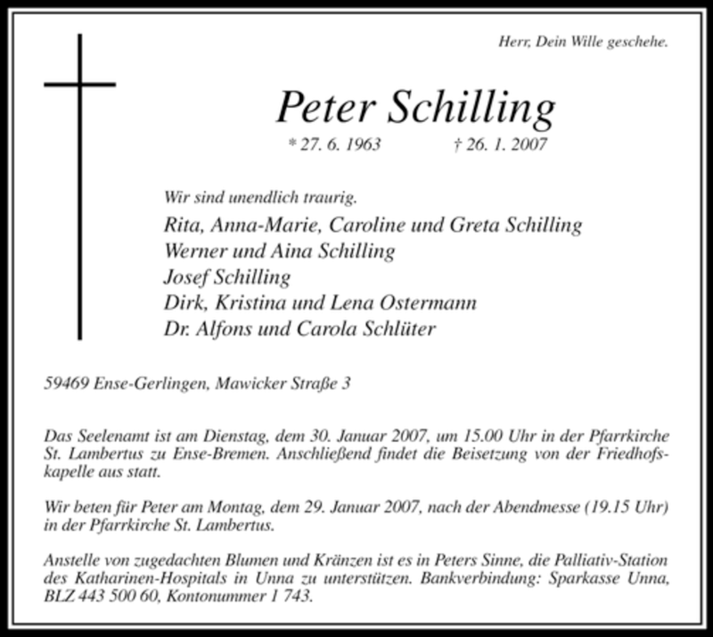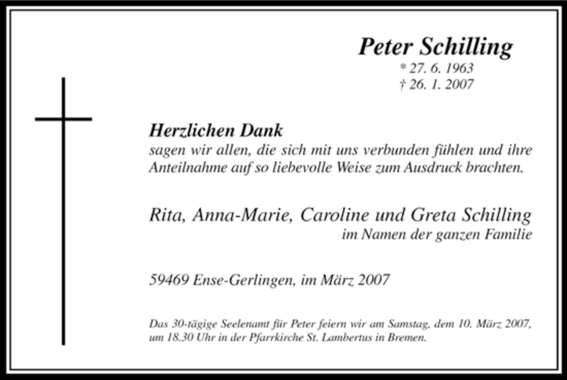 Hier finden Sie alle Traueranzeigen aus der Zeitung, die bisher für Peter Schilling erschienen sind. Weitere Traueranzeigen, die in der Zeitung erscheinen, werden hier ebenfalls aufgelistet