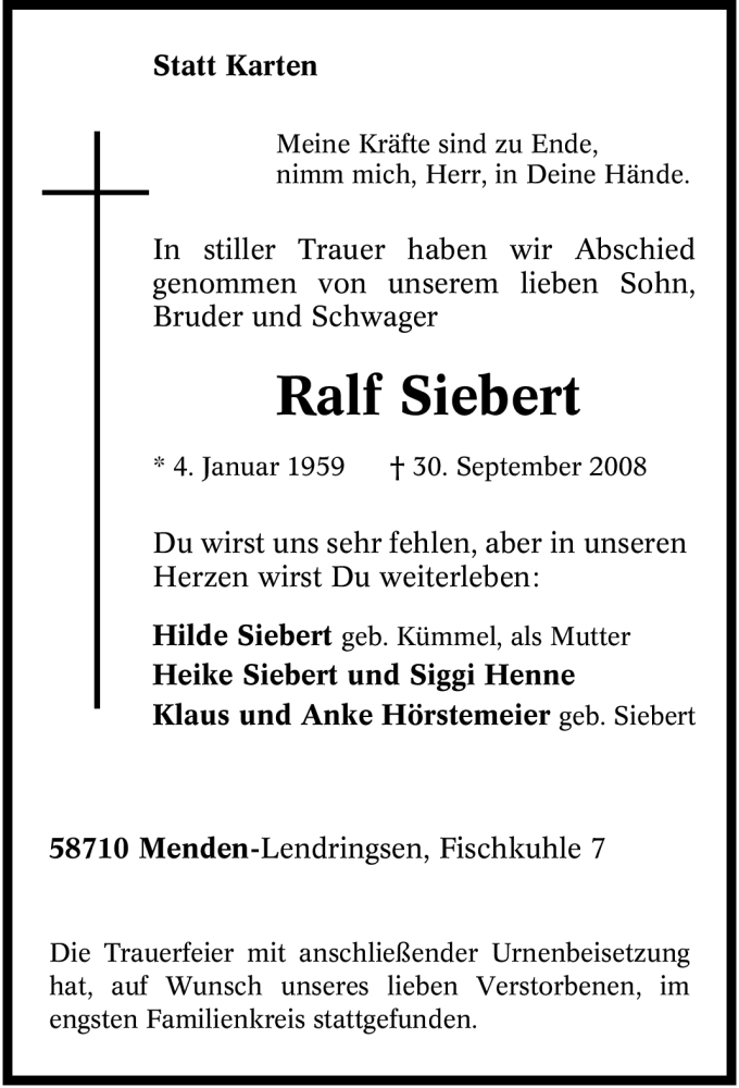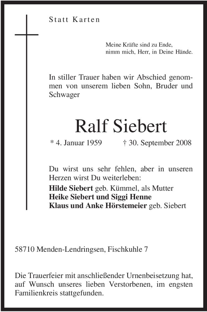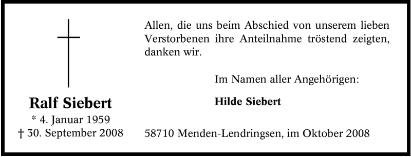 Hier finden Sie alle Traueranzeigen aus der Zeitung, die bisher für Ralf Siebert erschienen sind. Weitere Traueranzeigen, die in der Zeitung erscheinen, werden hier ebenfalls aufgelistet