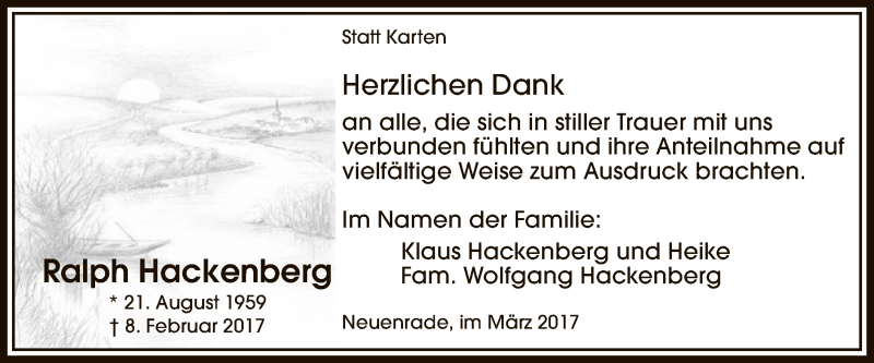 Hier finden Sie alle Traueranzeigen aus der Zeitung, die bisher für Ralph Hackenberg erschienen sind. Weitere Traueranzeigen, die in der Zeitung erscheinen, werden hier ebenfalls aufgelistet