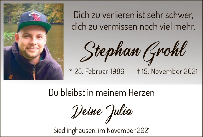 Hier finden Sie alle Traueranzeigen aus der Zeitung, die bisher für Stephan Grohl erschienen sind. Weitere Traueranzeigen, die in der Zeitung erscheinen, werden hier ebenfalls aufgelistet