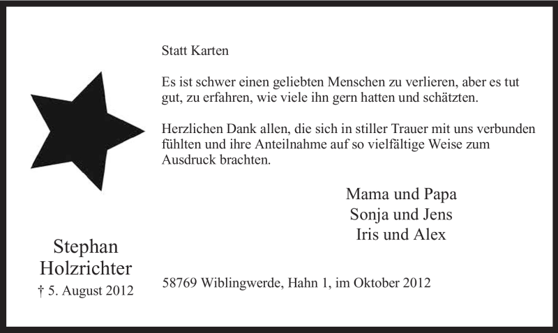Hier finden Sie alle Traueranzeigen aus der Zeitung, die bisher für Stephan Holzrichter erschienen sind. Weitere Traueranzeigen, die in der Zeitung erscheinen, werden hier ebenfalls aufgelistet