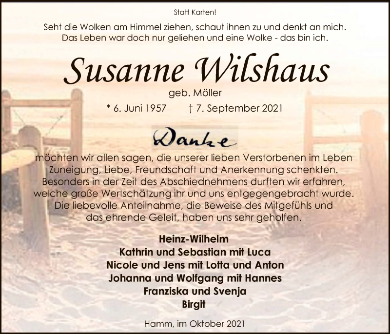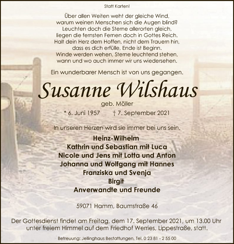 Hier finden Sie alle Traueranzeigen aus der Zeitung, die bisher für Susanne Wilshaus erschienen sind. Weitere Traueranzeigen, die in der Zeitung erscheinen, werden hier ebenfalls aufgelistet