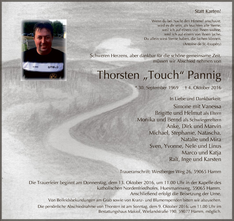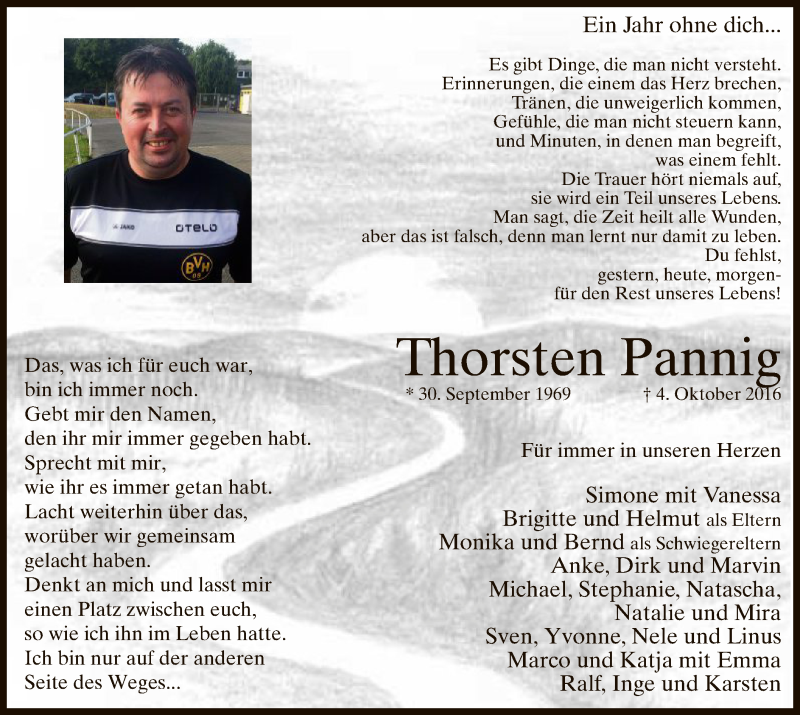 Hier finden Sie alle Traueranzeigen aus der Zeitung, die bisher für Thorsten Pannig erschienen sind. Weitere Traueranzeigen, die in der Zeitung erscheinen, werden hier ebenfalls aufgelistet