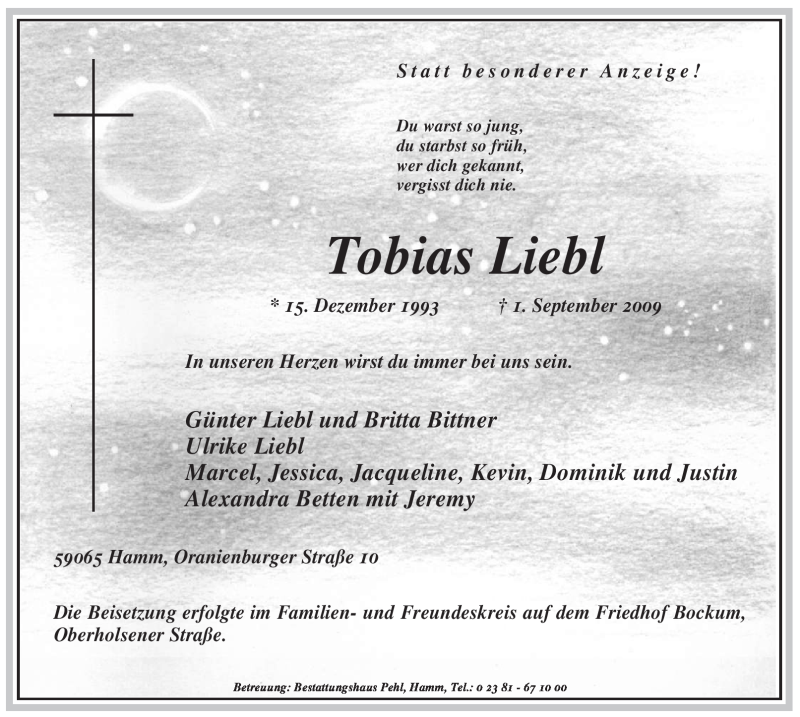 Hier finden Sie alle Traueranzeigen aus der Zeitung, die bisher für Tobias Liebl erschienen sind. Weitere Traueranzeigen, die in der Zeitung erscheinen, werden hier ebenfalls aufgelistet