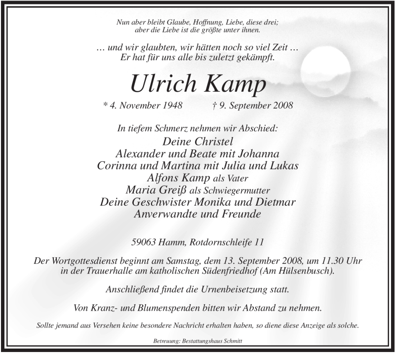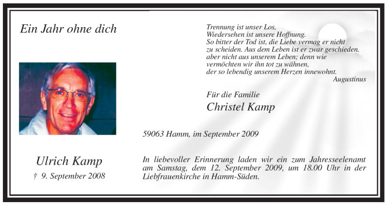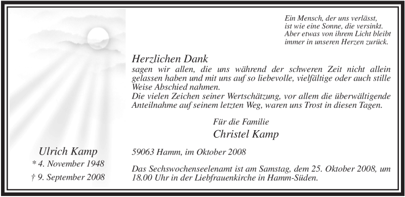 Hier finden Sie alle Traueranzeigen aus der Zeitung, die bisher für Ulrich Kamp erschienen sind. Weitere Traueranzeigen, die in der Zeitung erscheinen, werden hier ebenfalls aufgelistet