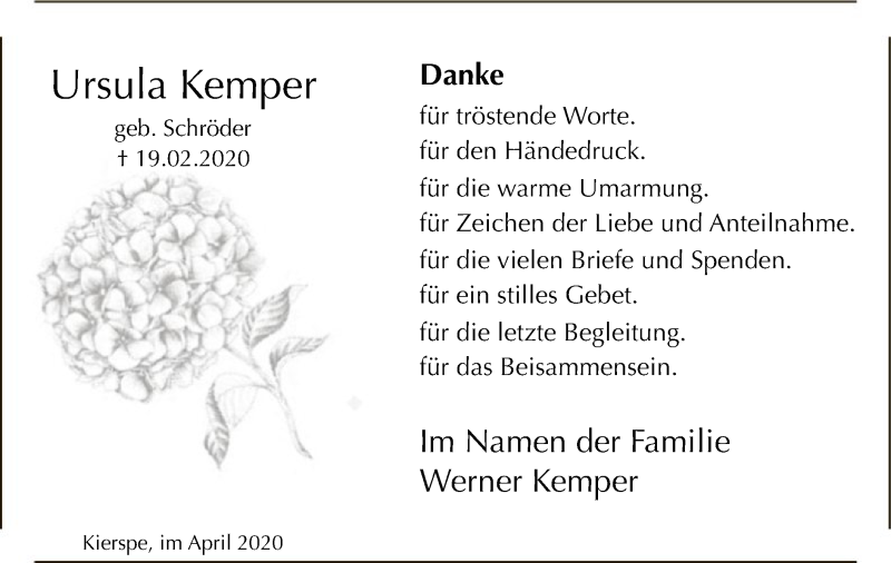Hier finden Sie alle Traueranzeigen aus der Zeitung, die bisher für Ursula Kemper erschienen sind. Weitere Traueranzeigen, die in der Zeitung erscheinen, werden hier ebenfalls aufgelistet